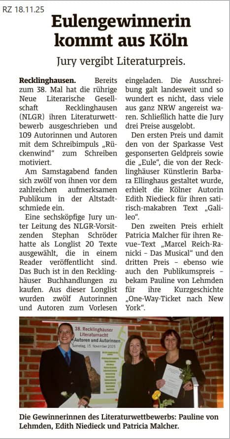 Die Autoren und Autorinnen wurden bereits für den 15.11.2025 in die Altstadtschmiede in Recklinghausen eingeladen, und dies sind: